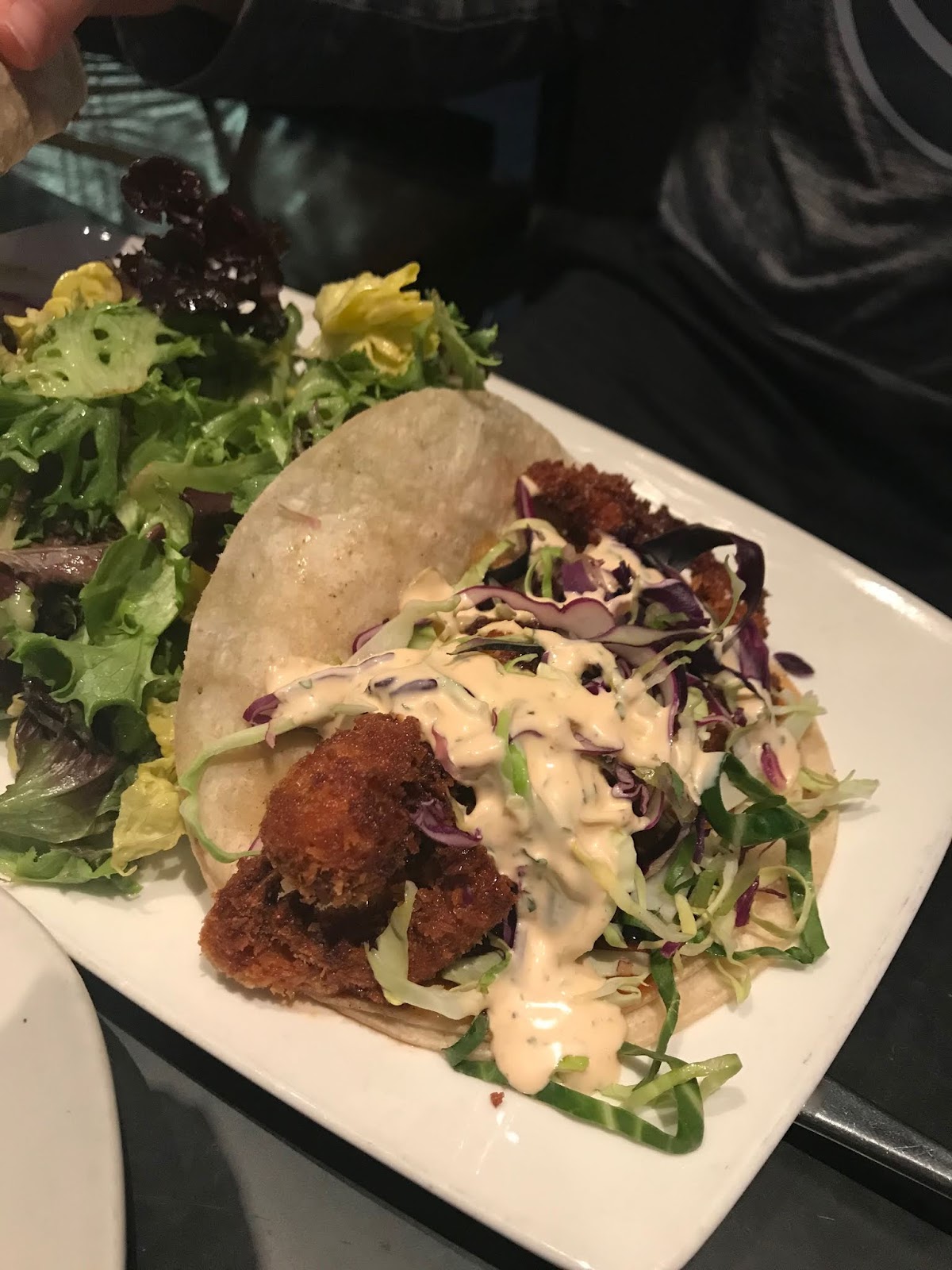 Chip was adventurous and tried several new foods. Check out this soft shell crab taco he ordered! It was delicious, but the sauce was very spicy. But Chip ordering a soft shell crab taco almost made me fall out of my chair.